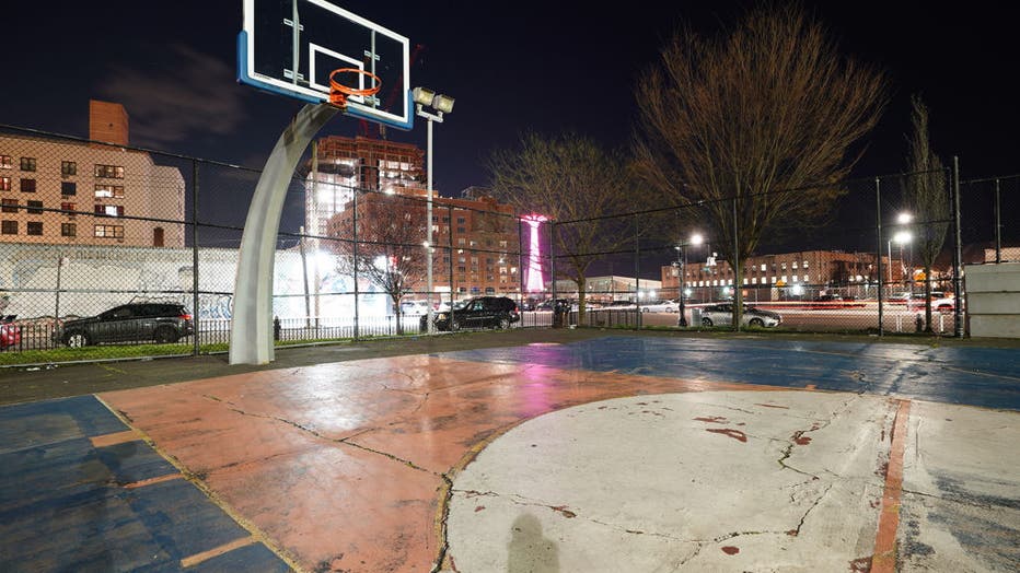 Basketball: View of empty basketball court at Carey Gardens in Coney Island. COVID-19. Brooklyn, NY 4/8/2020 CREDIT: Erick W. Rasco (Photo by Erick W. Rasco /Sports Illustrated via Getty Images) (Set Number: X163236 TK2 )