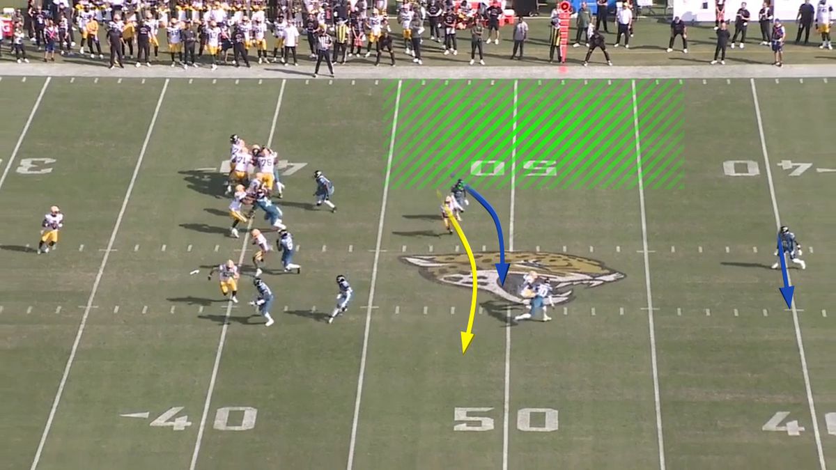 This is a play that was in the Packers’ playbook, but was apparently not part of the game plan that week. They made this adjustment in-game due to the looks the Jaguars were giving. Kudos to the coaching staff for picking up on this and putting this in as an option during the game, and good recognition by Willis to see the rotation and Can it to give the Packers a huge play.