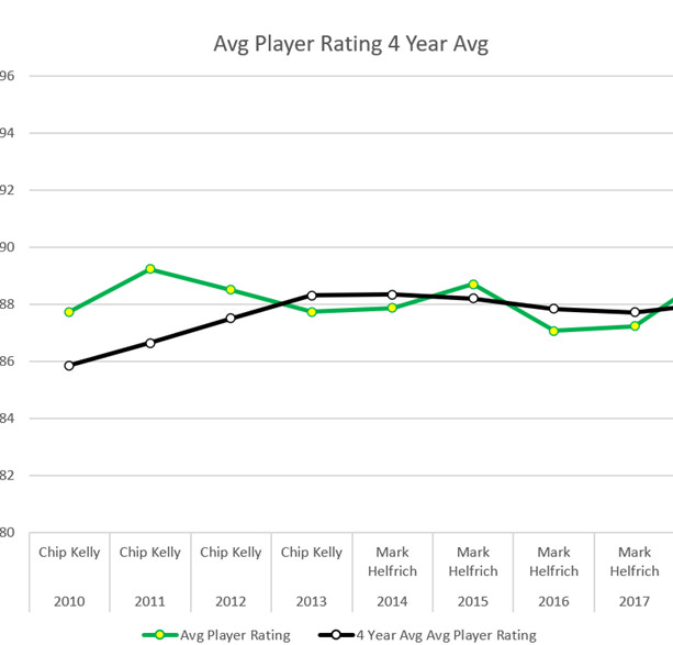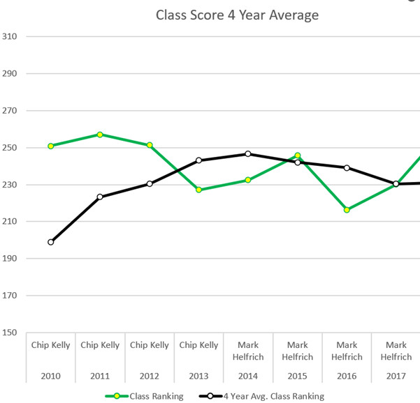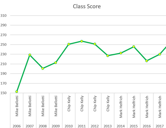 After taking over for Kelly, Helfrich landed two solid classes. But the 2016 class (signed in January of that year) was Oregon’s worst in seven cycles, both by total composite score and average player rating. When combined with the on-field disaster that followed, it was clear a change had to be made.