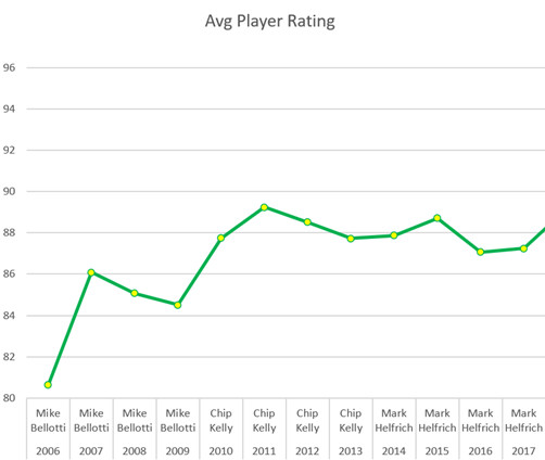 The narrative around Helfrich’s recruiting—that it wasn’t good—matches the data. Recruiting was the second major factor that led to his dismissal.
