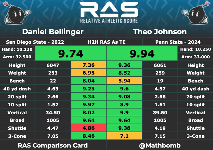 Theo Johnson is a better athlete and Chris Manhertz is a better blocker.