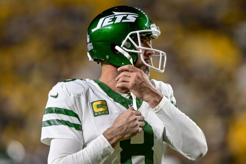 New York Jets quarterback Aaron Rodgers during a game against the Pittsburgh Steelers on Oct. 20, 2024. — Ed Thompson / Steelers Now