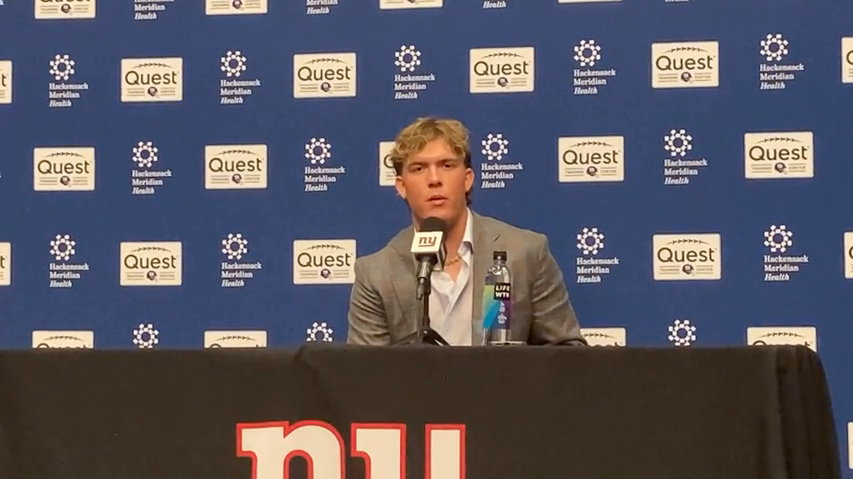 Jaxson Dart addressed the media after the Giants traded back into the first round to pick him in the 2025 NFL Draft.