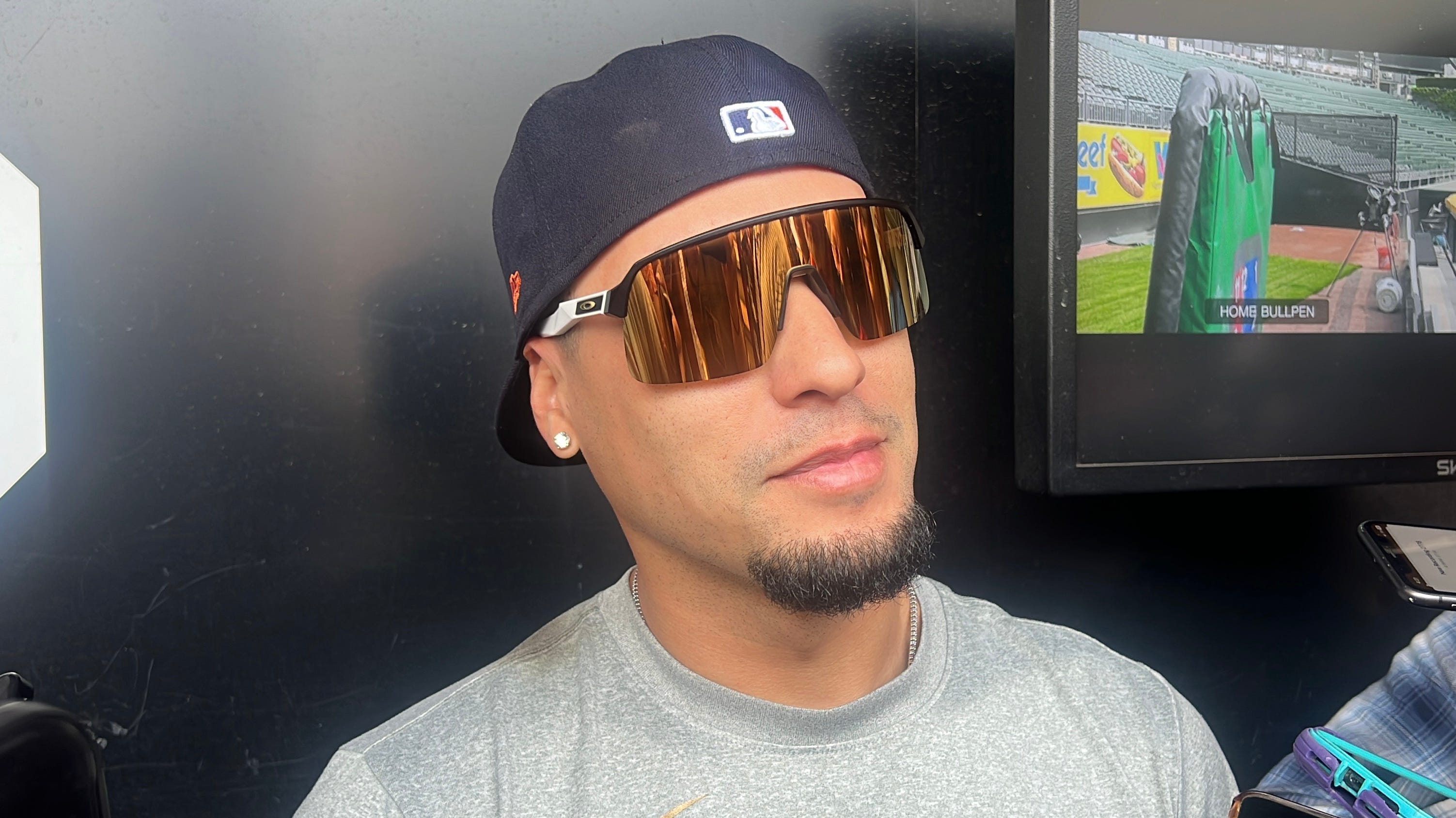Detroit Tigers shortstop Javier Báez talks to reporters June 2, 2025, about playing for MLB’s best team, his career resurgence, Pete Crow-Armstrong.