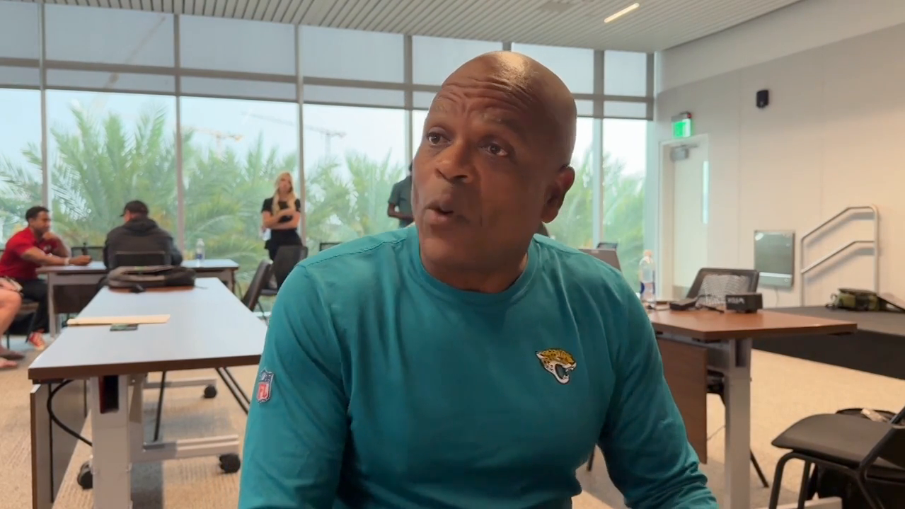 Jacksonville Jaguars secondary coach shares his first impressions of two-way player Travis Hunter during the team’s assistant coach roundtable Thursday