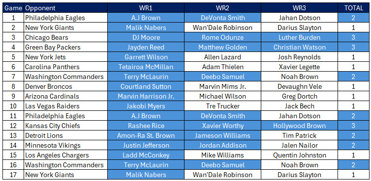 When you break down each wide receiver position, each team will have a different advantage level over the Cowboys. We presume every team will have a quality WR1, so that’s the starting point. But which teams will tax the secondary even more with quality WRs down the depth chart? Every receiver whom we suspect will present a difficult matchup for their respective WR position is highlighted below. Note: This isn’t just a who’s good and who’s not. They are judged based on the role they have in the offense. For example, having Luther Burden III as the third wide receiver is going to be a problem. Here is how the schedule breaks down…