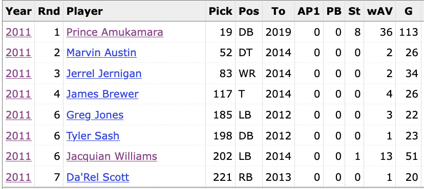 The seeds of their demise were being planted, though. This was their 2011 draft class: