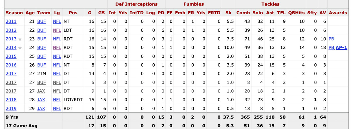 Courtesy of Pro Football Reference