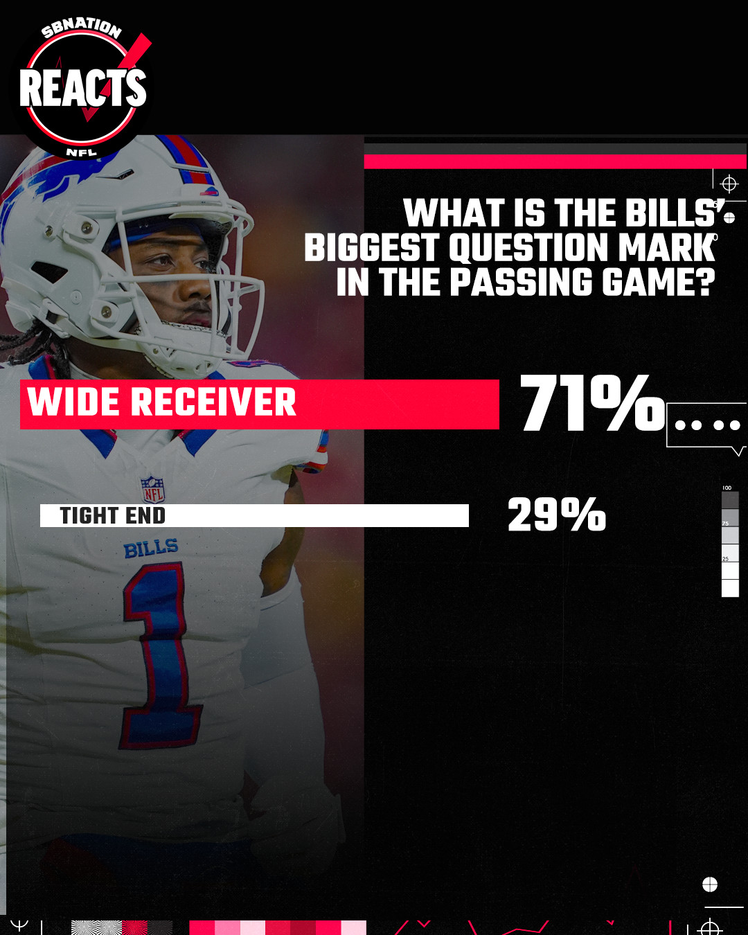 But which position among the two is Buffalo’s biggest question mark heading into training camp in late July? Based on Reacts votes, wide receiver is the biggest unknown, with 71% of voters voting that way, while just 29% see it tight end as the biggest question mark on offense. It’s true that the depth chart remains largely unchanged at tight end, but does the position truly feel settled? Are you ready to put all your chips in on the outcome of this survey?