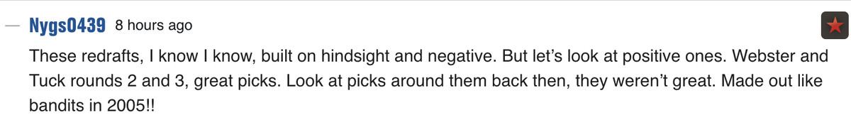 The other day I wrote a piece about the Pro Football Focus re-draft of the 2011 NFL year. That season was notable for the New York Giants because they won the Super Bowl, but their draft that year was disappointing and set the stage for their downfall to come. BBV member Nygs 0439 preferred to look at the bright side of life as a Giants fan: