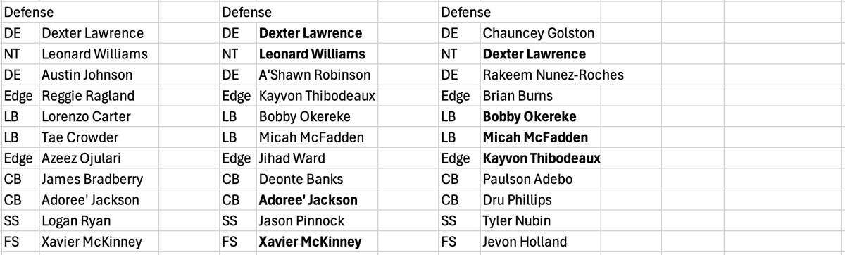 What you can see, though, is that the Giants’ offense has almost completely been replaced over four years, with only Darius Slayton and Andrew Thomas remaining. It’s a combination of young players with a few veterans who are new or have only been Giants for a year. The defense is further along, about half of it being players who’ve now played together for at least a year or two…albeit under two very different defensive coordinators.
