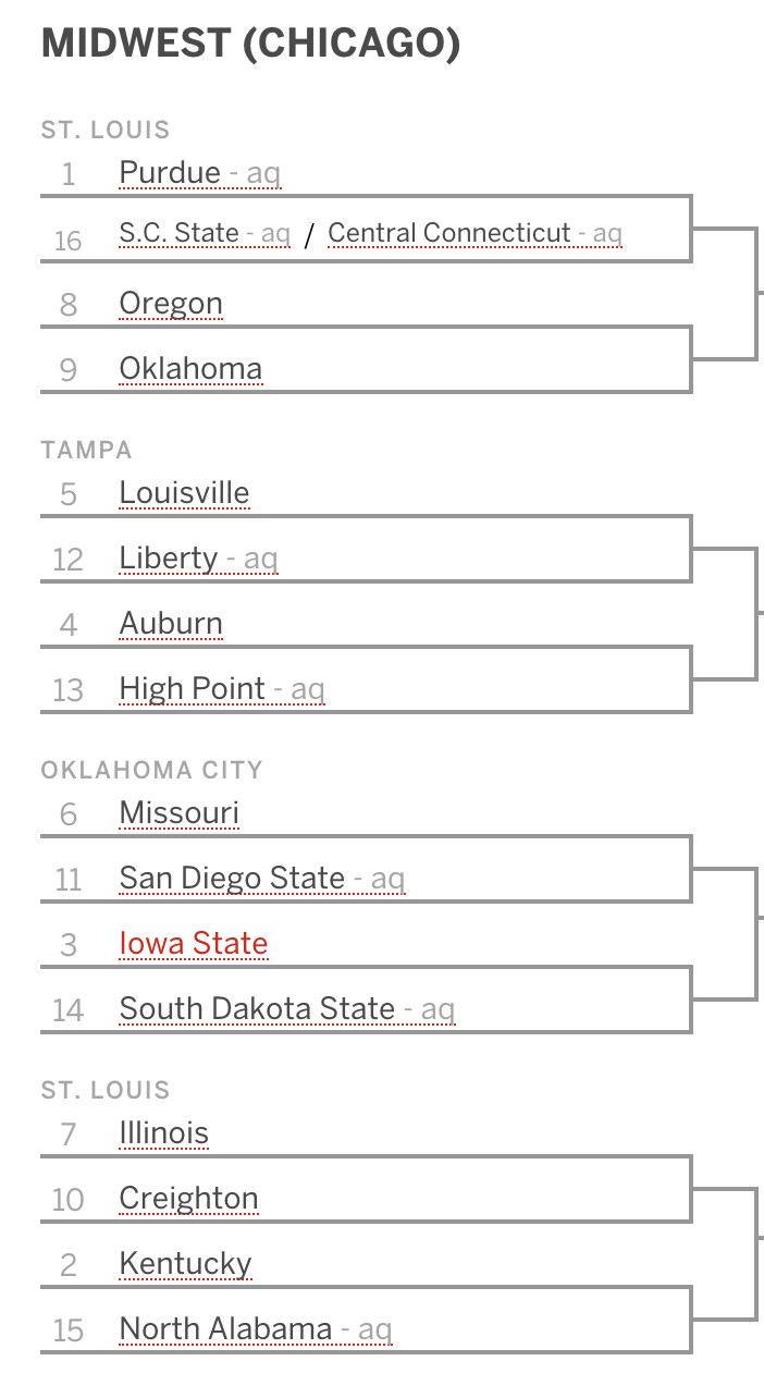 ESPN just dropped theirs, and you can see the full bracket here.
