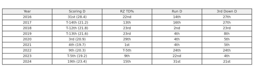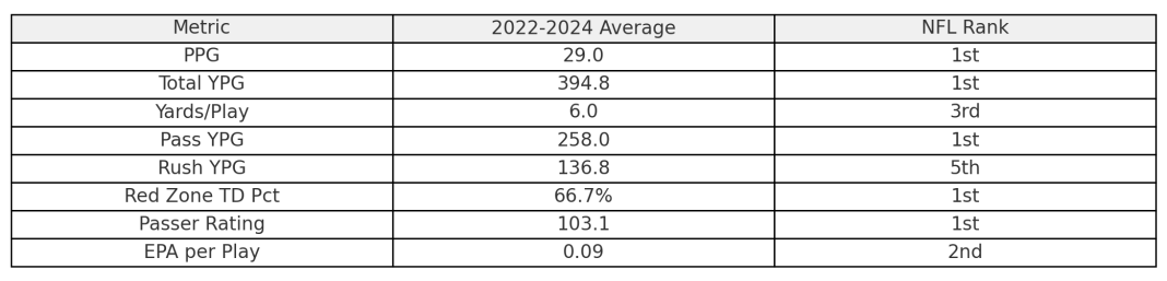 Johnson engineered a Detroit offense that slapped around defenses for three straight years. From 2022-2024, his Lions averaged 29.0 PPG — first in the league. First in yards (394.8 YPG), passing (258.0 YPG), red zone TDs (66.7%), and QB rating (103.1), per CBS Sports. These aren’t cute metrics. This is “we’ll bury you on third-and-eight” kind of dominance.