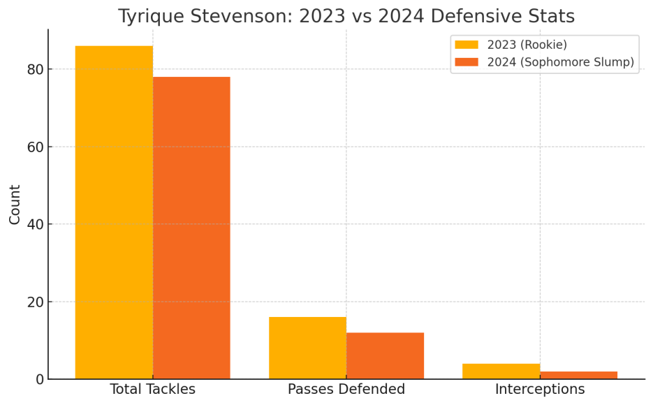 Tyrique Stevenson’s 2023 vs. 2024 Defensive Stats