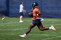 Broncos Running Back RJ Harvey (37) runs drills on the last day of the Broncos minicamp on Thursday, June 12, 2025