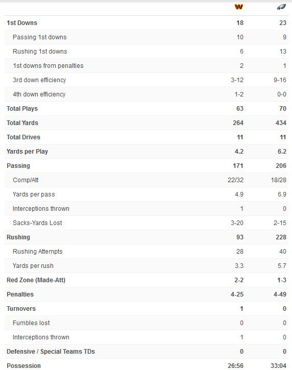 Washington scored on a Zach Ertz reception with 00:28 on the clock. The 2-point conversion failed and any chance for a miracle evaporated.