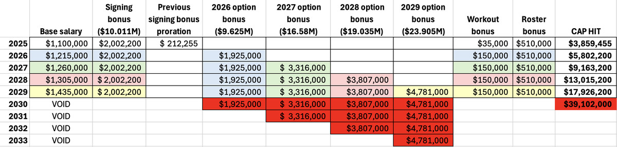 2026 option bonus: $9,625,000 ($1.925M cap hit per year)