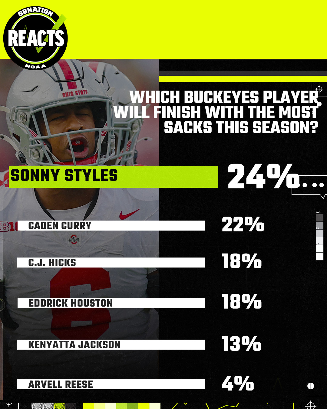 This one is more difficult to nail down. It has been 20 seasons since a Buckeye linebacker has led the team in sacks; A.J. Hawk had 9.5 in the 2005 season to tie defensive lineman Mike Kudla, so the chances of Sonny Styles doing it aren’t great.