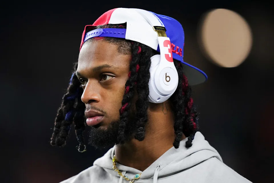 CINCINNATI, OHIO – NOVEMBER 05: Damar Hamlin #3 of the Buffalo Bills looks on before the game against the Cincinnati Bengals at Paycor Stadium on November 05, 2023 in Cincinnati, Ohio. (Photo by Dylan Buell/Getty Images)Dylan Buell/Getty Images