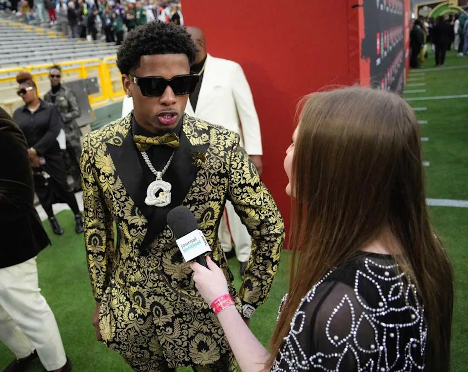 Packers rookie Matthew Golden during the NFL draft red carpet at Lambeau Field.© Mike De Sisti / Milwaukee Journal Sentinel / USA TODAY NETWORK via Imagn Images