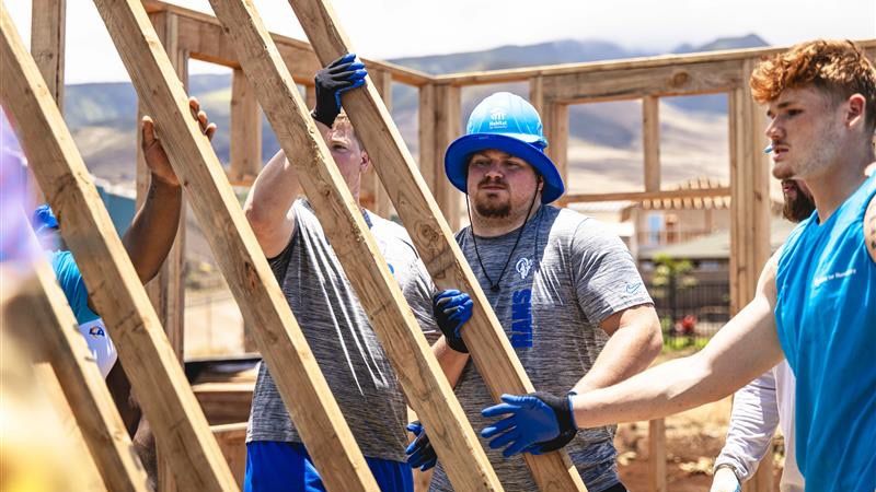 [Note: See below for more photos of the Lahaina home rebuild project with the Los Angeles Rams.]