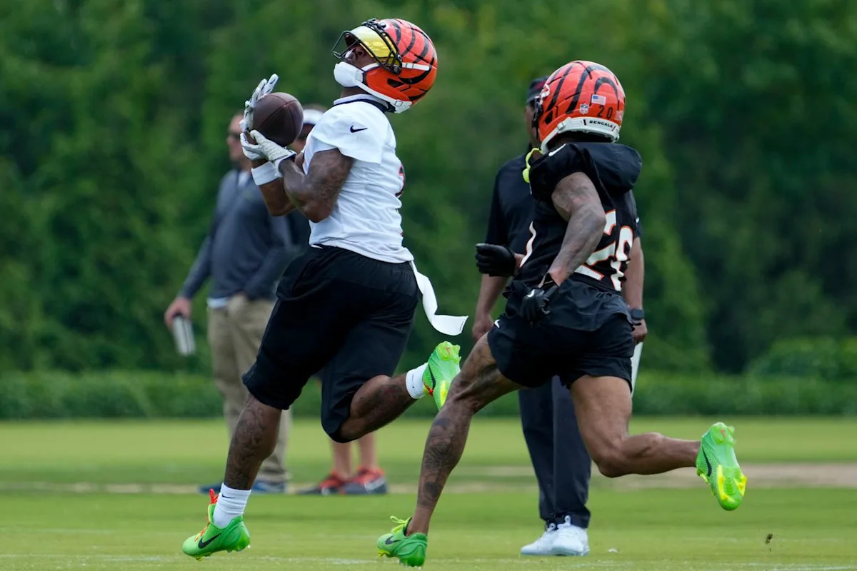 During one OTA session, Burrow threw an interception on a pass intended for Mike Gesicki — one that Cam Taylor-Britt jumped for a pick. The corner, in need of a bounce-back year, wasn’t shy about celebrating it.