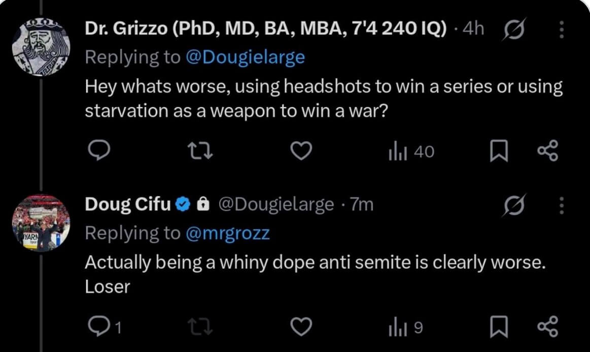 Among the replies from Cifu’s account were, “Actually being a whiny dope anti semite is clearly worse. Loser” and “Eat s–t 51st state anti-semite loser. Israel now and forever. Until ever (sic) last Hamas rat is eliminated.”