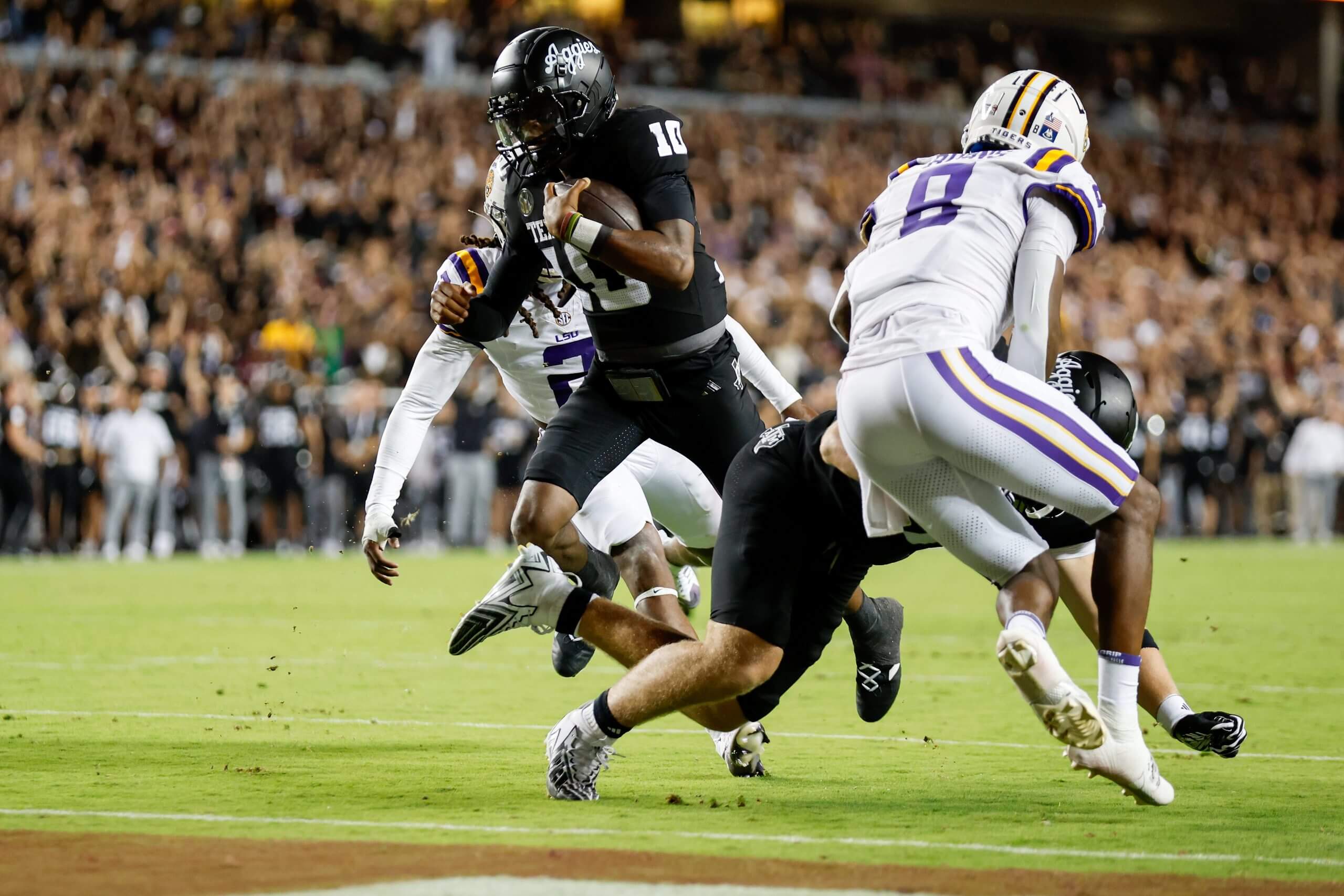 “The challenge that he’s battling is just the most high-profile game he won was against LSU, and he won it with his feet,” Texas A&M coach Mike Elko said.