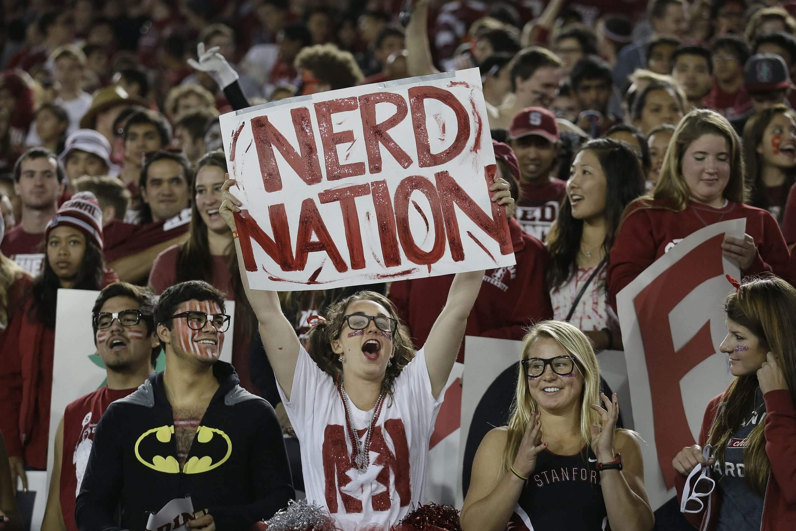 Stanford football players and fans alike donned glasses to celebrate Nerd Nation in 2013. (Jeff Chiu / AP photo)