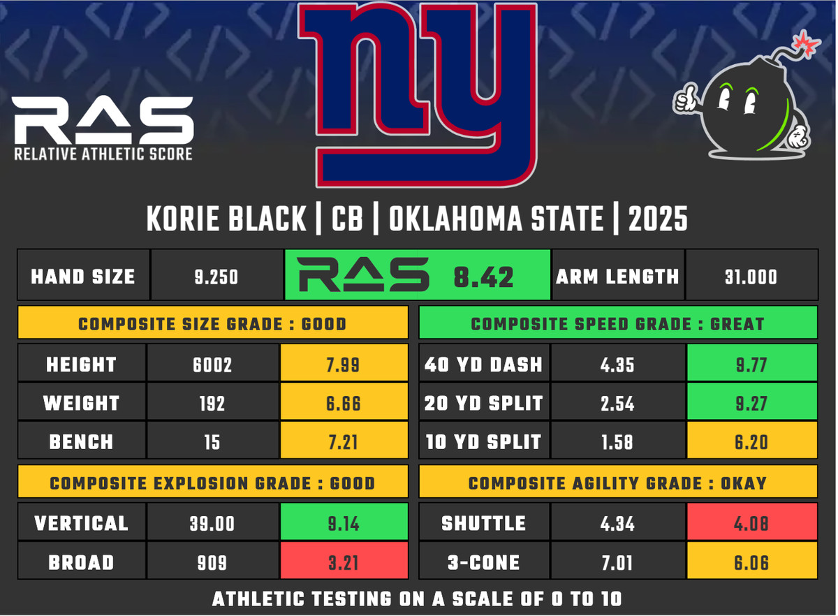 Black, 6-foot-½-inch, 192 pounds, ran a 4.35 40-yard dash at his Pro Day with an impressive 9.27 20-yard split.