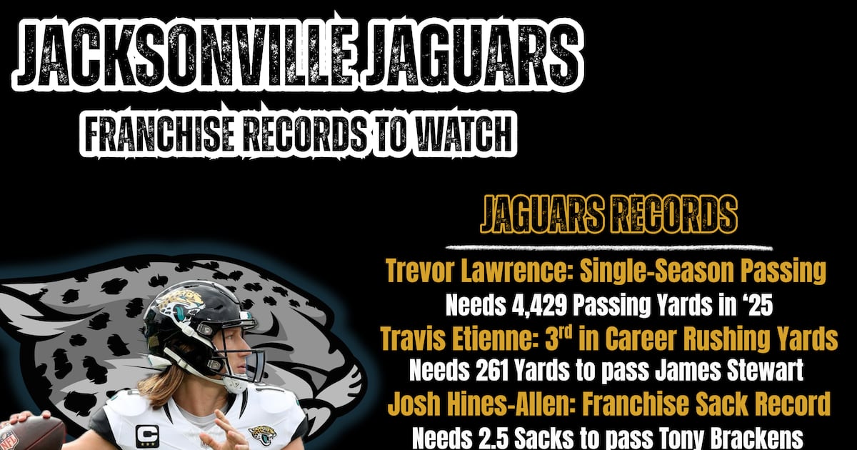 JACKSONVILLE, Fla. — The Jaguars have some players closing in on franchise milestones while others have pretty decent odds to set some single-season records. Let’s look at four Jaguars records set to be broken in 2025.