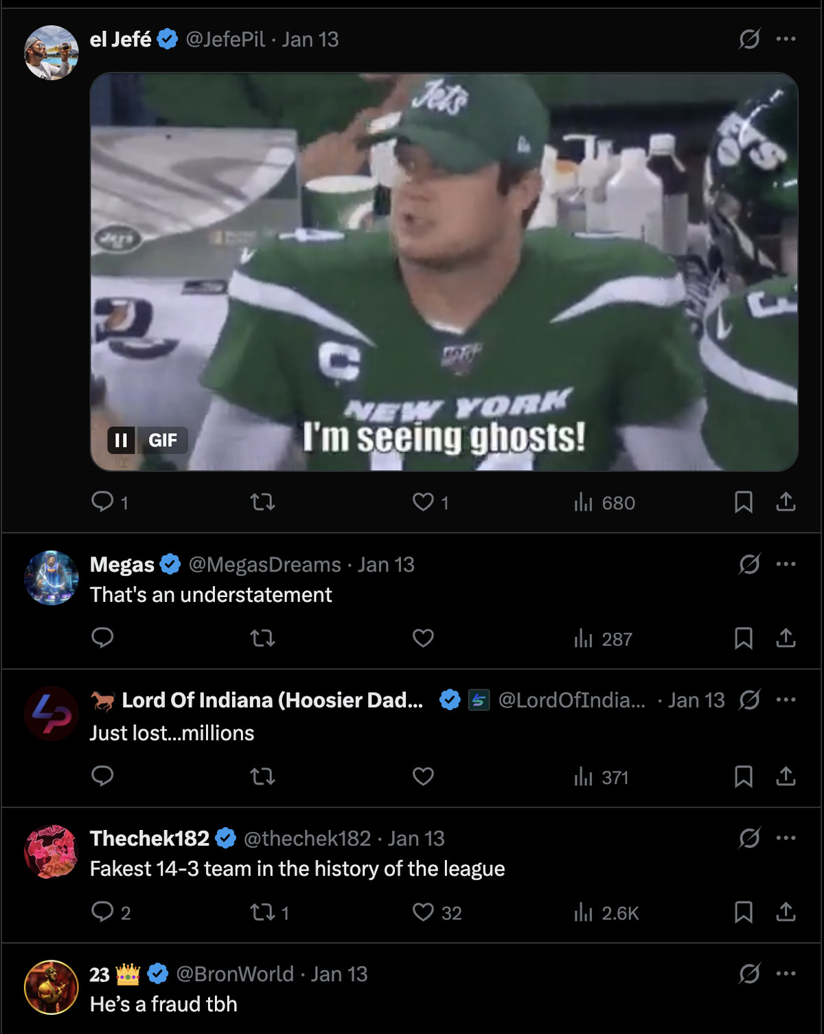 On the other hand, Sam Darnold’s 2024 QBR was 60.4, the highest of his career. We’re just going to inform you now that nearly every good number is the best of Darnold’s career and not type it every single time. His INT% was 2.2, better than Smith. His on target percentage was 77.7%, not as good as Smith’s 81.8% last year but better than Smith in 2021 or 2023.