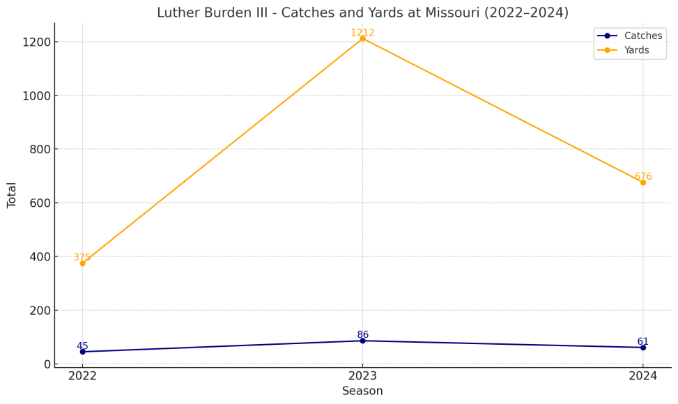Luther Burden III’s Catches and Yards at Missouri (2022-2024)