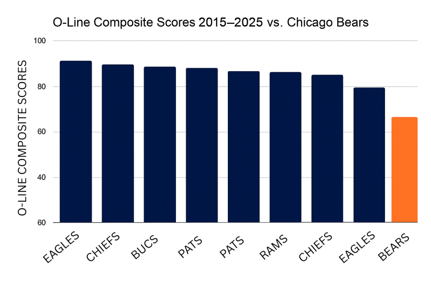 Offensive Line Composite Scores 2015-2025 vs. the Chicago Bears