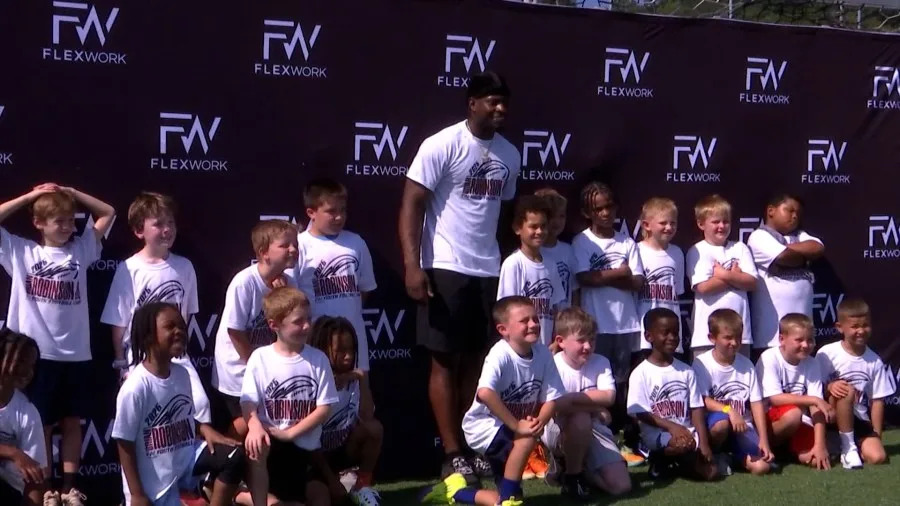 “I remember when I was their age, I used to go to camps and, you know, star players camps and stuff. And it was so exciting that, you know, just me coming and giving back, you know, having an opportunity to give back and was seeing these kids light up and seeing these parents and stuff this. So it’s all to not bring their kids out in 100 degrees to just come out here and get some work with me. I really appreciate it, ” says Robinson.