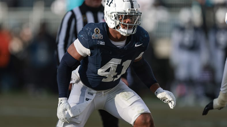Dec 21, 2024; University Park, Pennsylvania, USA; Penn State Nittany Lions linebacker Kobe King (41) in action during the second half against the Southern Methodist Mustangs at Beaver Stadium. Mandatory Credit: Vincent Carchietta-Imagn Images
