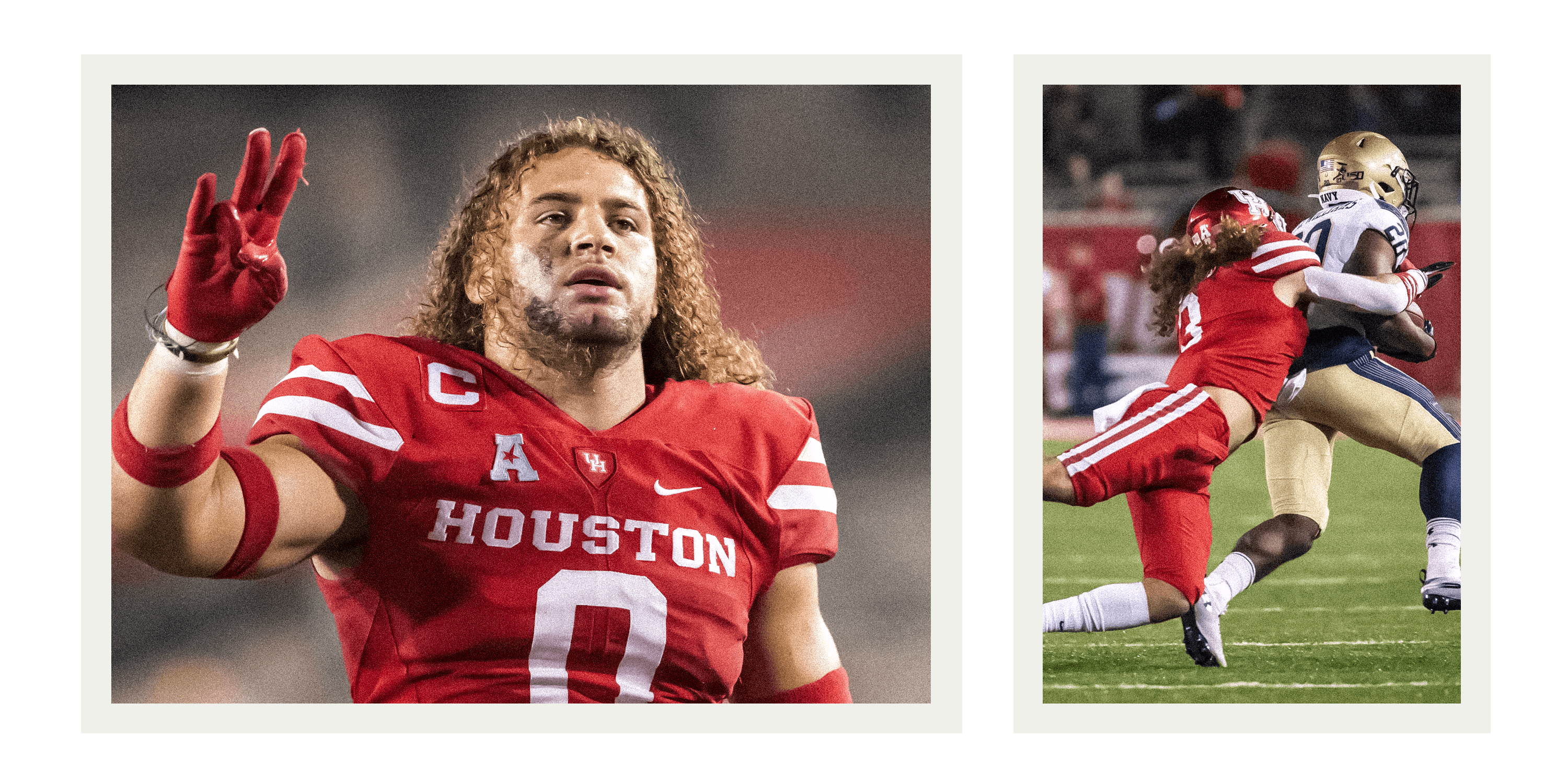 After bouncing from running back to safety early on at Houston, Grant found a home at linebacker. As a senior he broke out, leading the Cougars in tackles and earning All-AAC first-team honors. “He played with his hair on fire every single snap, with no regard for his personal safety,” Gideon says. “Not one time did I have to ask, ‘Can you give me more effort? Can you play a little more physical?’