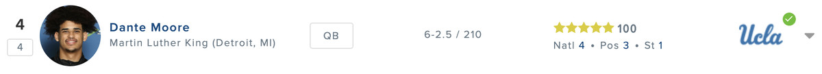 Instead, Moore (who was ranked as the top recruit in the country by Sports Illustrated) signed with UCLA after flipping his commitment away from Oregon. Chip Kelly even let Moore start games immediately as a freshman, but eventually lost his job to Ethan Garbers and entered the transfer portal before we even hit December of that same year.