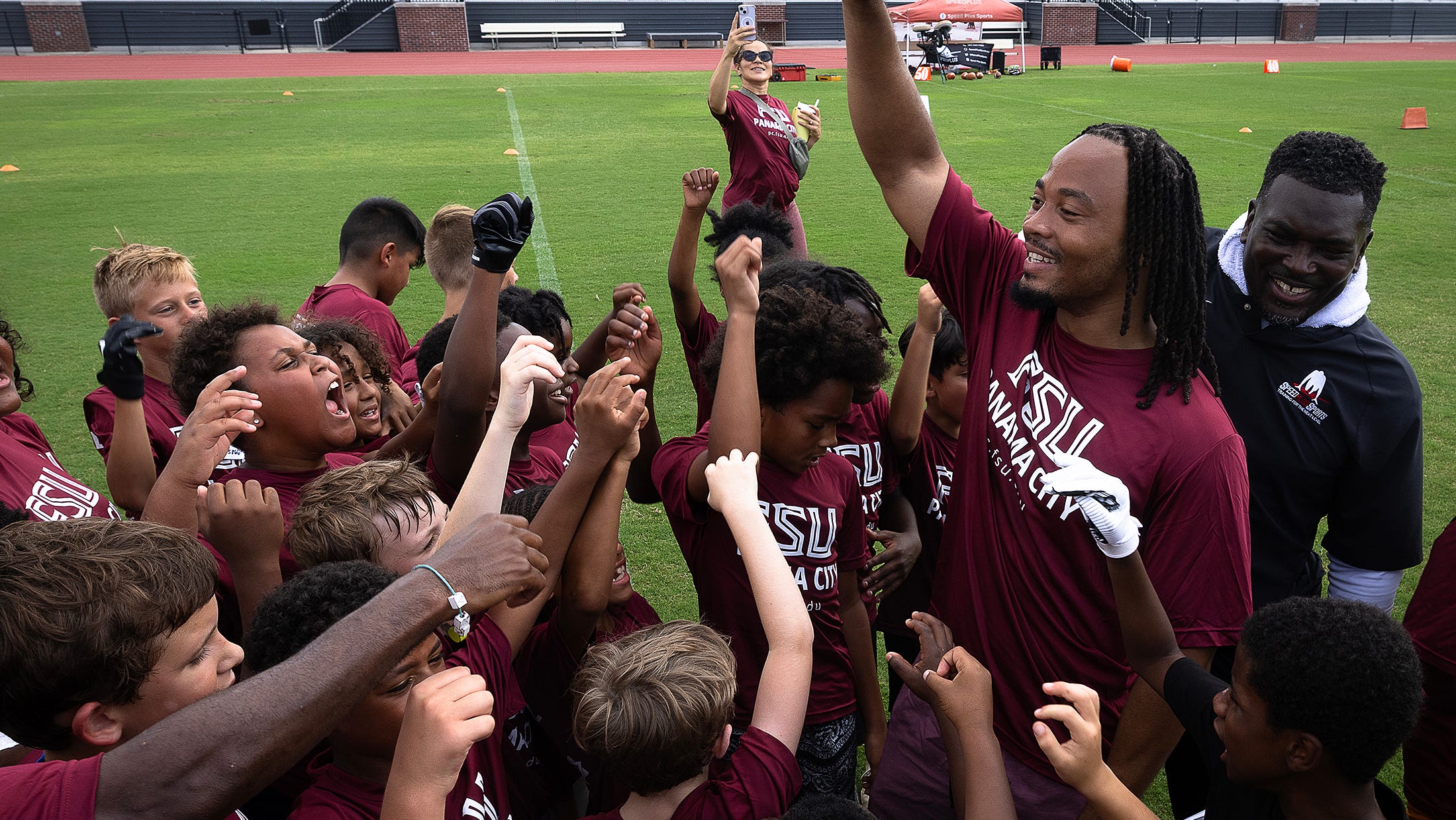 Javien Elliot, a former Rutherford and FSU star, and FSU PC promote football training at Tommy Oliver Stadium in Panama City on June 7.