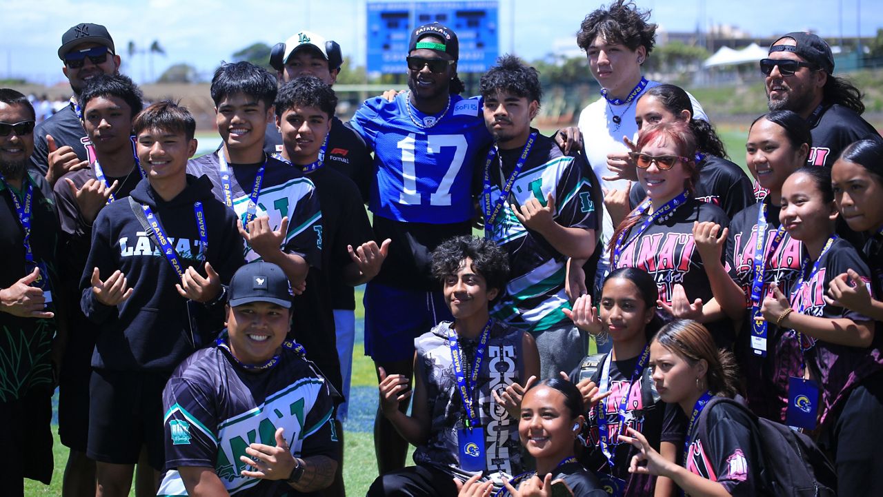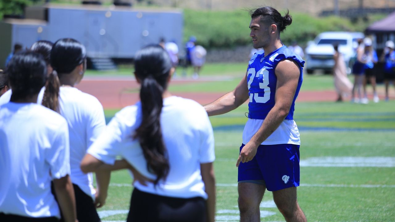 Puka Nacua played jan-ken-po with Maui keiki. (Spectrum News/Brian McInnis)