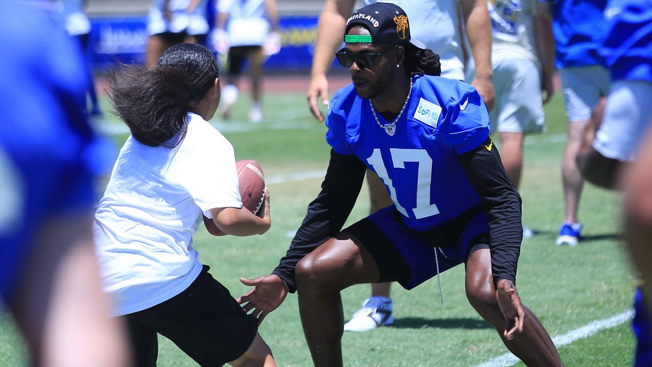 Receiver Puka Nacua talked to participants about a drill. (Spectrum News/Brian McInnis)