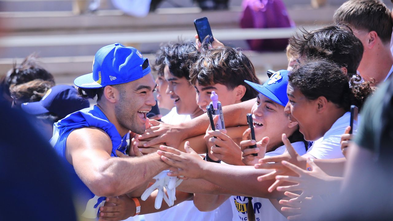WAILUKU, Hawaii — Puka Nacua passed through a War Memorial Stadium gate with a wide smile and an open hand as he prepared to greet a horde of eager keiki pressed together along a waist-high metal fence.