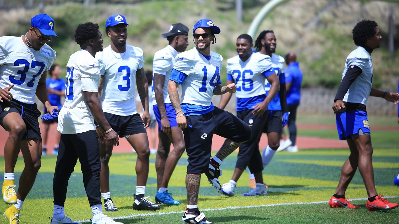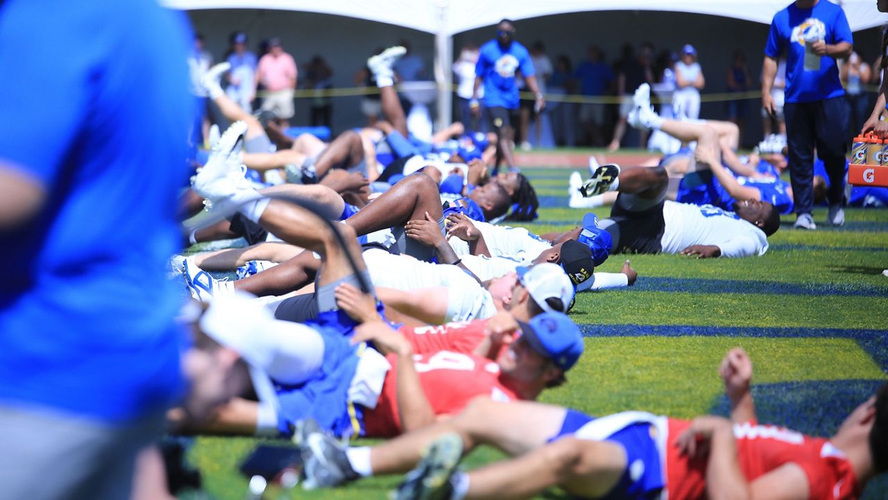 Rams players loosened up. (Spectrum News/Brian McInnis)