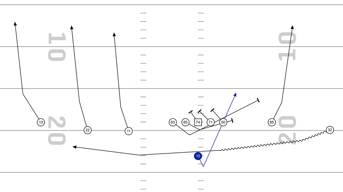 With that in mind, I’ve started looking around the league for offenses that run plays out of a similar structure. The idea is to find the plays out of those looks that I like, then see how they may work with the Packers personnel.