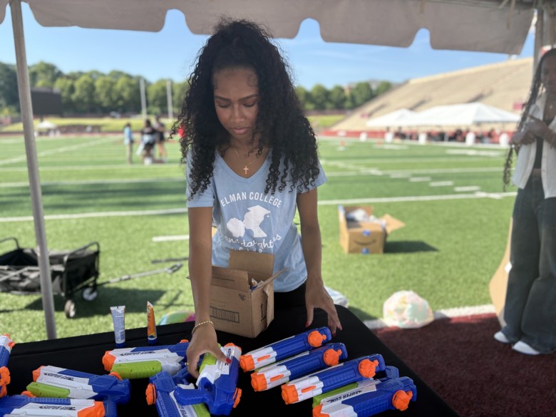 Spelman College rising senior Skylar Sanford (above) sets up a water gun table during last week’s camp. Photo by Noah Washington/The Atlanta Voice