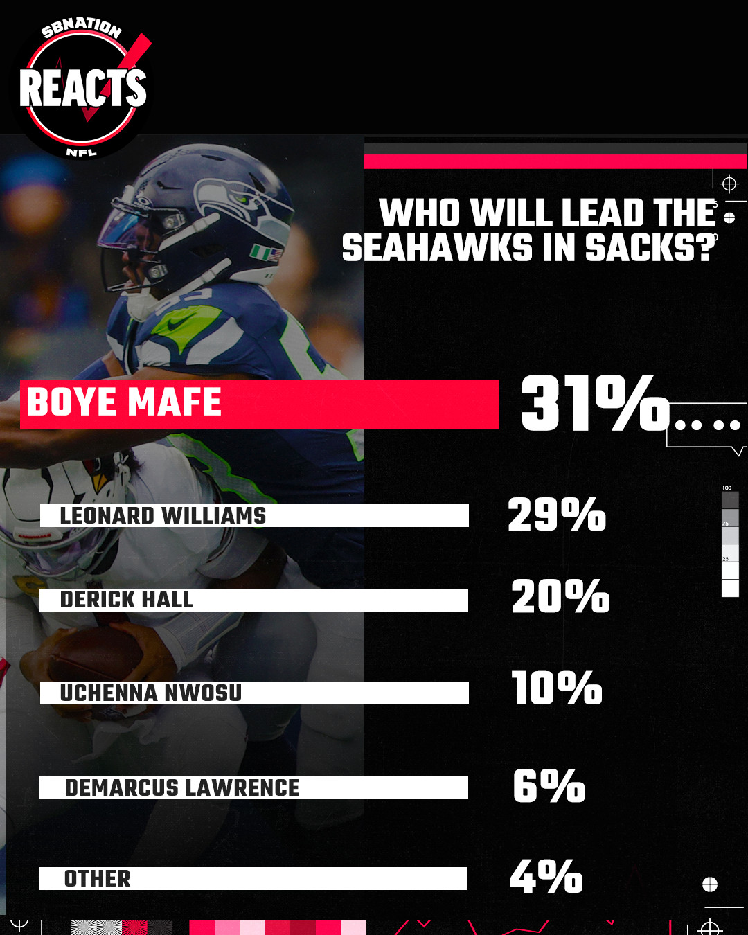 Sidenote: in my opinion, even with healthy seasons from all of our guys, it is more likely that the Seahawks have multiple players with 9-ish sacks than one of them cresting the double-digit sack total that still seems so oddly elusive for the squad (other than Leonard Williams).
