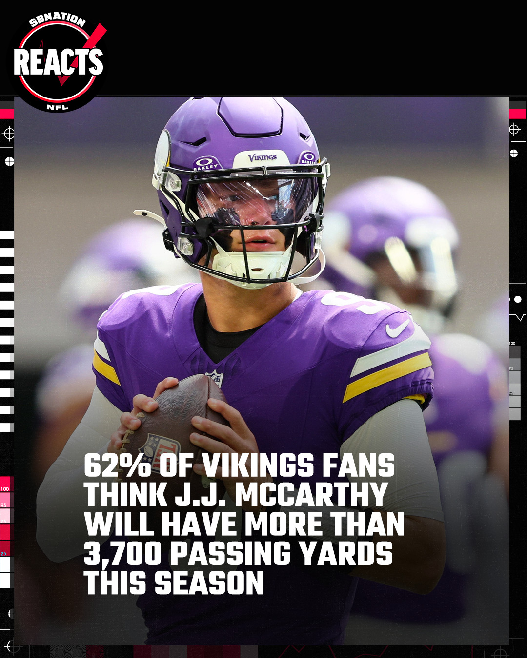 Our two questions this week were centered around how we feel about the potential performance of young J.J. McCarthy as he takes over the helm of our favorite football team. We put a couple of figures out there for both passing yardage and touchdown passes and asked you to pick “over” or “under” for both. We’ll start with our passing yardage prediction, which we set at 3,700 yards.