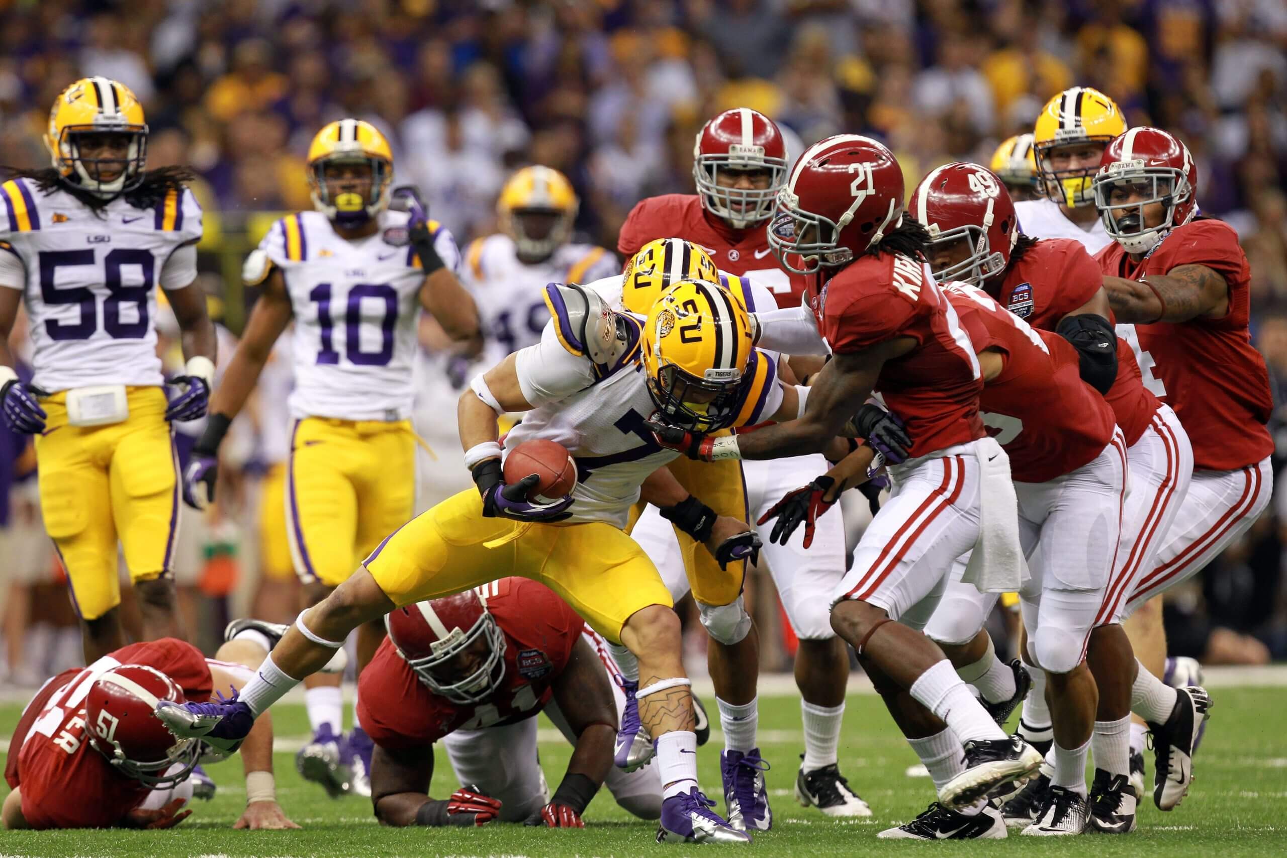 Biggest game: In 2011, No. 1 LSU beat No. 2 Alabama 9-6 in overtime to claim their regular season matchup. They faced off again with the same rankings two months later for the BCS national title in New Orleans. Like the first matchup, in which nobody scored a touchdown, it was all field goals for the first three quarters. With 4:36 left in the game, Alabama running back Trent Richardson finally punched one over the goal line in a 21-0 win for the national title.