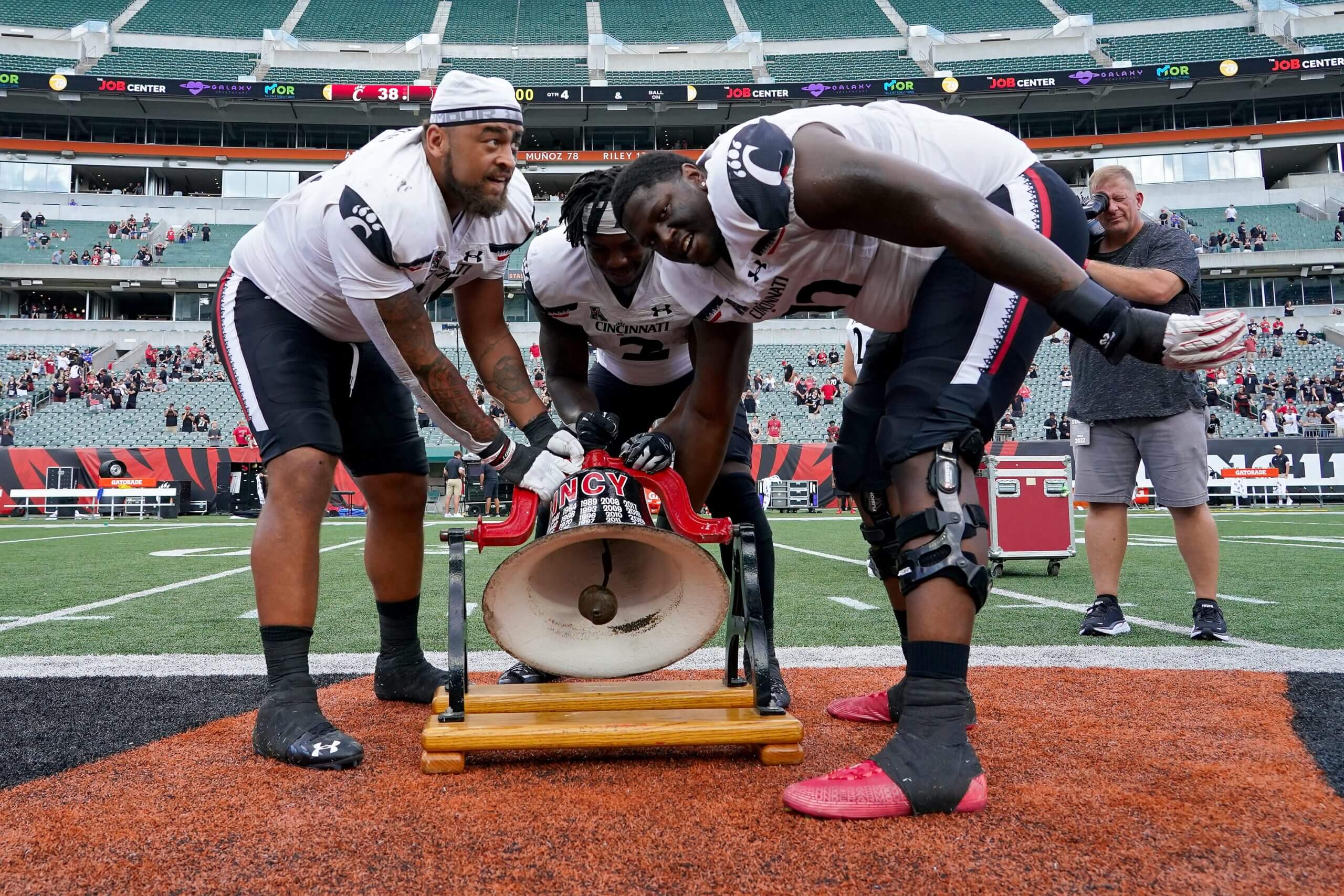 The teams met just five times as conference foes. Cincinnati was a charter member of the MAC in 1947, while Miami joined a year later. The Bearcats dropped out after the 1952 season.The rivalry is called the “Battle for the Victory Bell,” a tradition that began in the 1890s when Cincinnati students stole a bell from one of Miami’s academic halls. A replica was created in 1946, which is still used as a traveling trophy.In 1923, Cincinnati’s Jimmy Nippert died following a deep cut caused by a cleat in the teams’ Thanksgiving tilt. His grandfather, Jimmy Gamble (Procter & Gamble company), donated $250,000 toward the Bearcats’ stadium to memorialize his grandson. It was then named Nippert Stadium, and it remains Cincinnati’s home field a century later.