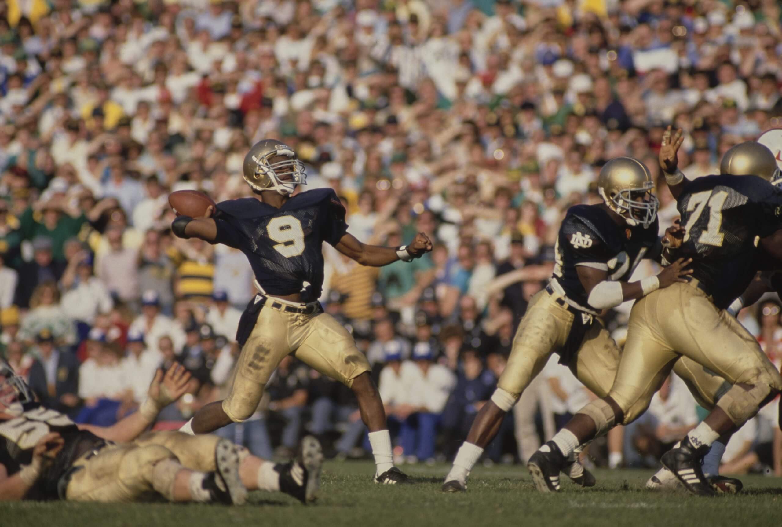 Biggest game: Defending national champion and top-ranked Notre Dame traveled to No. 2 Michigan in September 1989 for the Wolverines’ opener. Irish speedster Raghib Ismail returned the second-half kickoff for a 92-yard TD, then brought back another 88 yards for a score to lead Notre Dame to a 24-19 win.